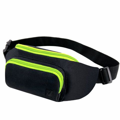 Сумка на пояс BRAUBERG RIO, черная, салатовые детали, 30х12x10см, 270823