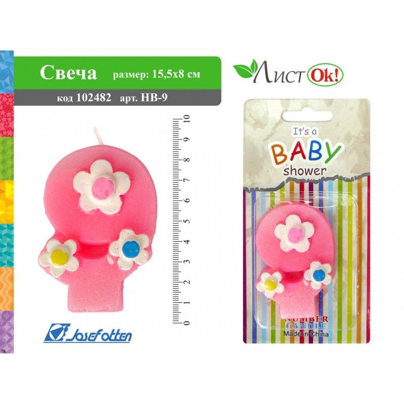 Свеча HВ-9 "Цифра 9 цветочки", 15,5*8 см J.Otten /1 /12 /900
