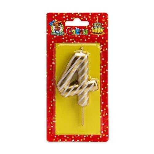 Свеча-цифра «4» золотая в полоску