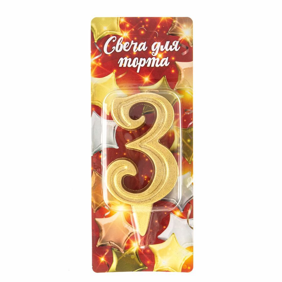 Свеча-цифра Гигант Грация золотая с блеском "3"