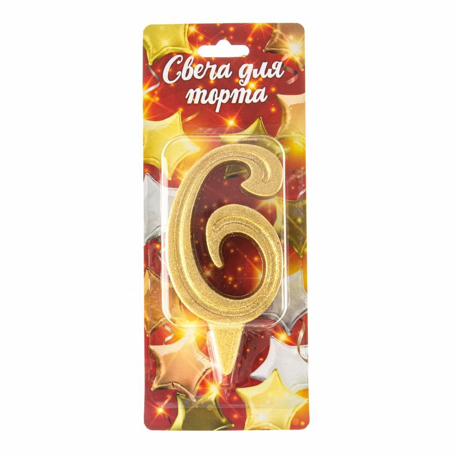 Свеча-цифра Гигант Грация золотая с блеском «6»