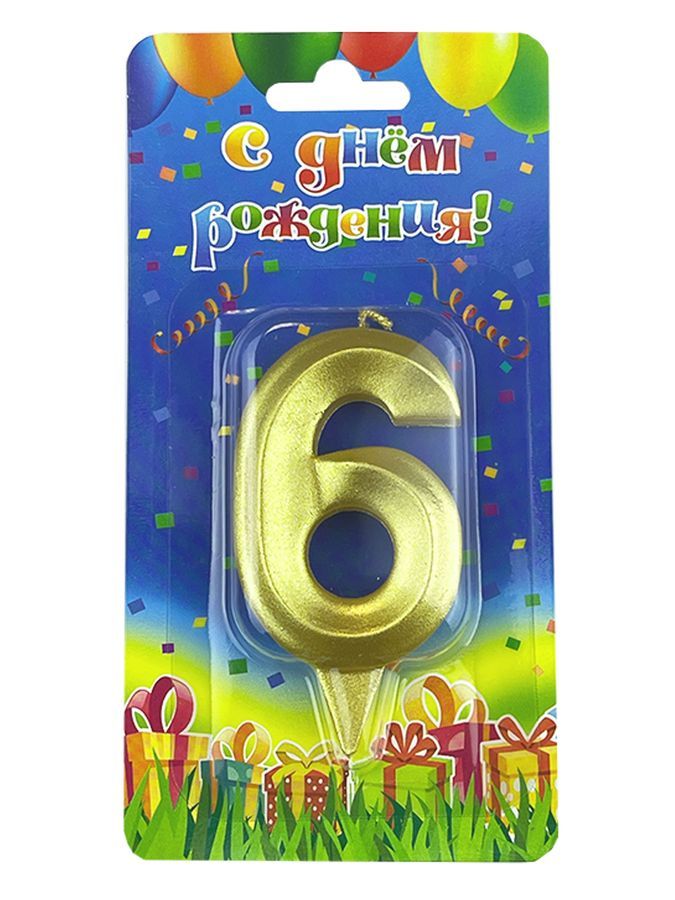 Свеча-цифра ГРАНЬ золотой металик «6»