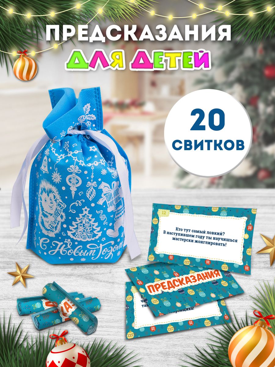 Новый год — время волнующего ожидания чудес и волшебства. Это значит, что пора устроить детям праздничное веселье с шуточными предсказаниями! Скорее вытягивай свиток и узнавай, какие приятные сюрпризы ждут именно тебя! В мешочке спрятаны добрые предсказания в прозе, которые порадуют детей и создадут позитивный настрой на весь год.