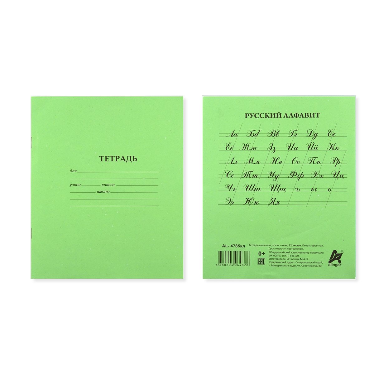 Тетрадь 12л., косая линия, Alingar «Эконом», скрепка