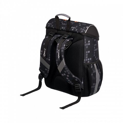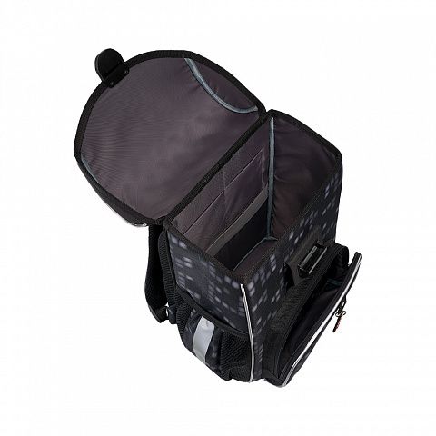 Жёстко-каркасный ранец с эргономичной спинкой. Объём: 15 литров. Вес: 680 грамм-один из самых лёгких в категории. Без дополнительной фурнитуры. Одно вместительное отделение, внутри эластичный фиксатор для тетрадей и учебников формата А4+ и мини-органайзер для канцелярских принадлежностей. Снаружи фронтальный карман на надёжной молнии с мягким ходом и два боковых кармана на резинке для бутылки с водой или зонтика. Эргономичная конструкция спинки ErgoLine®System из мягких подушечек распределяет вес ранца и снижает нагрузку на позвоночник ребёнка. "Дышащая" ткань AirMesh и воздушные каналы между подушечками спинки препятствуют образованию влаги. Мягкие S-образные лямки не давят на плечи. Светоотражающие элементы по всему периметру ранца. Ручка с резиновой накладкой для переноски в руке. Крепления ручки и лямок усилены дополнительными швами из лавсановых нитей. 100% полиэстер Оксфорд с полиуретановой пропиткой устойчив к износу и морозу. Пластиковые ножки защищают от загрязнений и влаги.