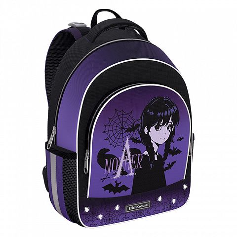Этот рюкзак размера 39х28х14 см объёмом 15 л изготовлен из полиэстера 600D с полиуретановой пропиткой, что делает его устойчивым к износу и морозу. Внутри вместительное отделение с эластичным фиксатором для тетрадей и учебников формата А4+. Также есть мини-органайзер для мелкой канцелярии и карман на молнии. На дне – жёсткая откидная вставка. Снаружи фронтальный карман на молнии с плавным ходом, а также два боковых на резинке, куда можно положить бутылку с водой или зонтик. Рюкзак весит всего 520 г, что делает его одним из самых лёгких в своей категории. У модели эргономичная спинка ErgoLine® System с грудной перемычкой. Такая конструкция из мягких подушечек равномерно распределяет вес рюкзака и снижает нагрузку на позвоночник. Ткань спинки AirMesh “дышит”, а воздушные каналы между ее подушечками препятствуют образованию влаги. Мягкие S-образные лямки не давят на плечи ребёнка, а грудная перемычка фиксирует положение рюкзака на теле. Светоотражающие элементы по всему периметру повышают безопасность в темноте