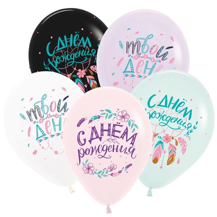 Воздушный шар 1шт 12" С Днем Рождения! Бохо!