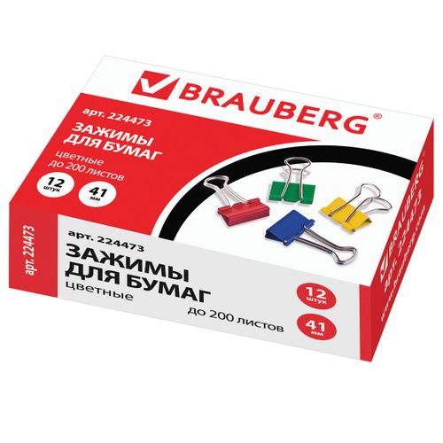 Изготовлены из стали с цветным покрытием. Позволяют скреплять до 200 листов. Не деформируют бумагу. Ширина зажима - 41 мм. Поставляются по 12 штук в картонной коробке.