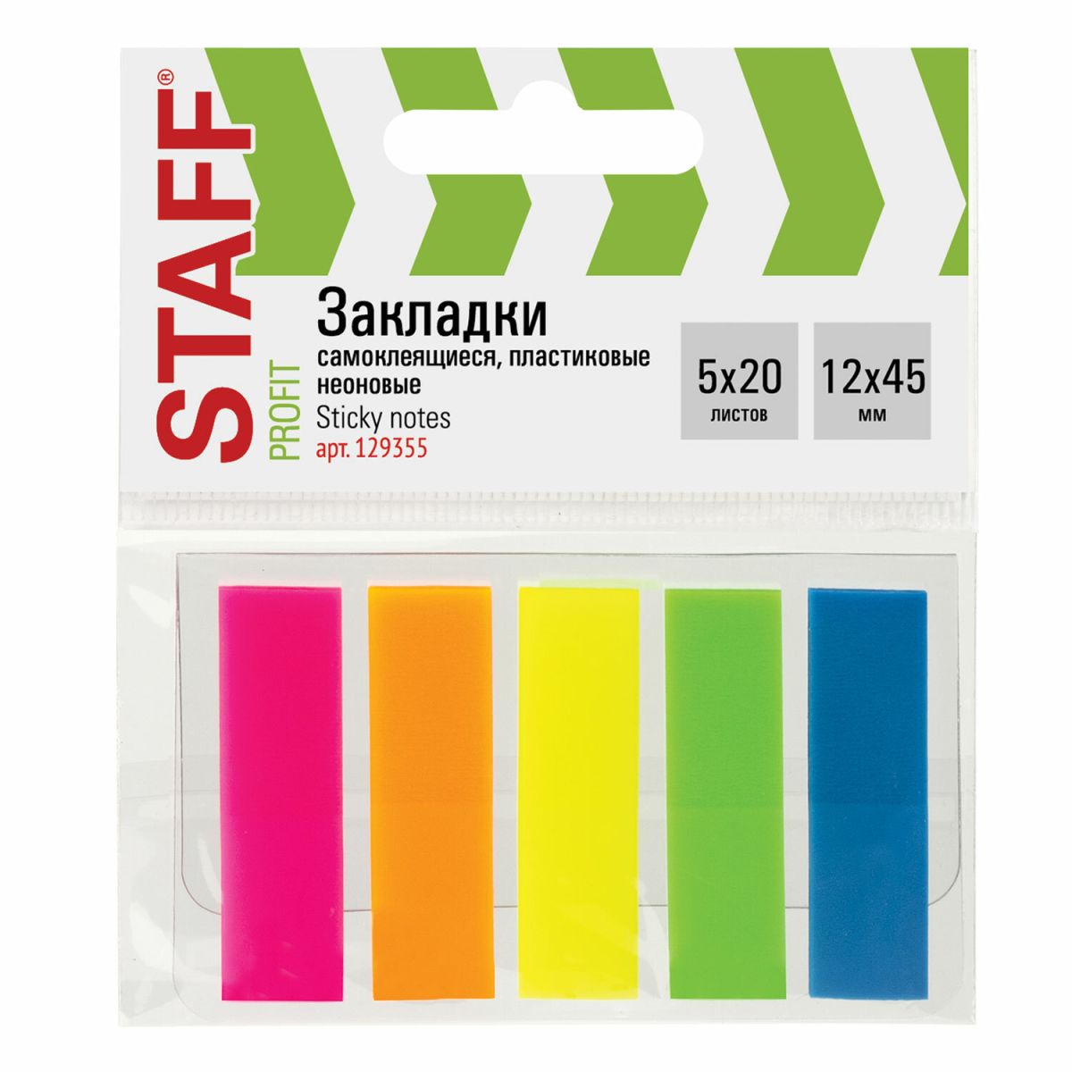 Закладки самоклеящиеся Staff 45х12мм, 5цв, 20л неон.